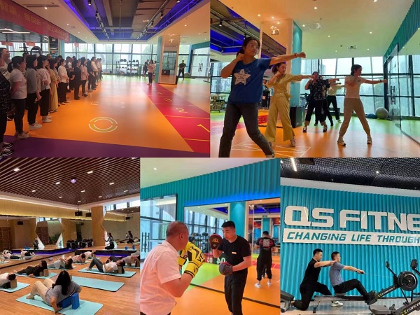 活动开始,健身中心店长向大家介绍了健身中心的教练团队、健身器材配备情况以及运动中的注意事项。大家随后根据自身需求分别选择了瑜伽、普拉提、拳击、器械训练以及运动康复等项目进行体验,专业教练团队全程在现场辅导讲解,帮助大家更加安全、科学地健身。健身项目动静结合,既有提升爆发力和耐受力的核心高效训练,又有增强柔韧性和平衡性的减压放松活动,让广大职工通过多方位的锻炼全面放松了身心。